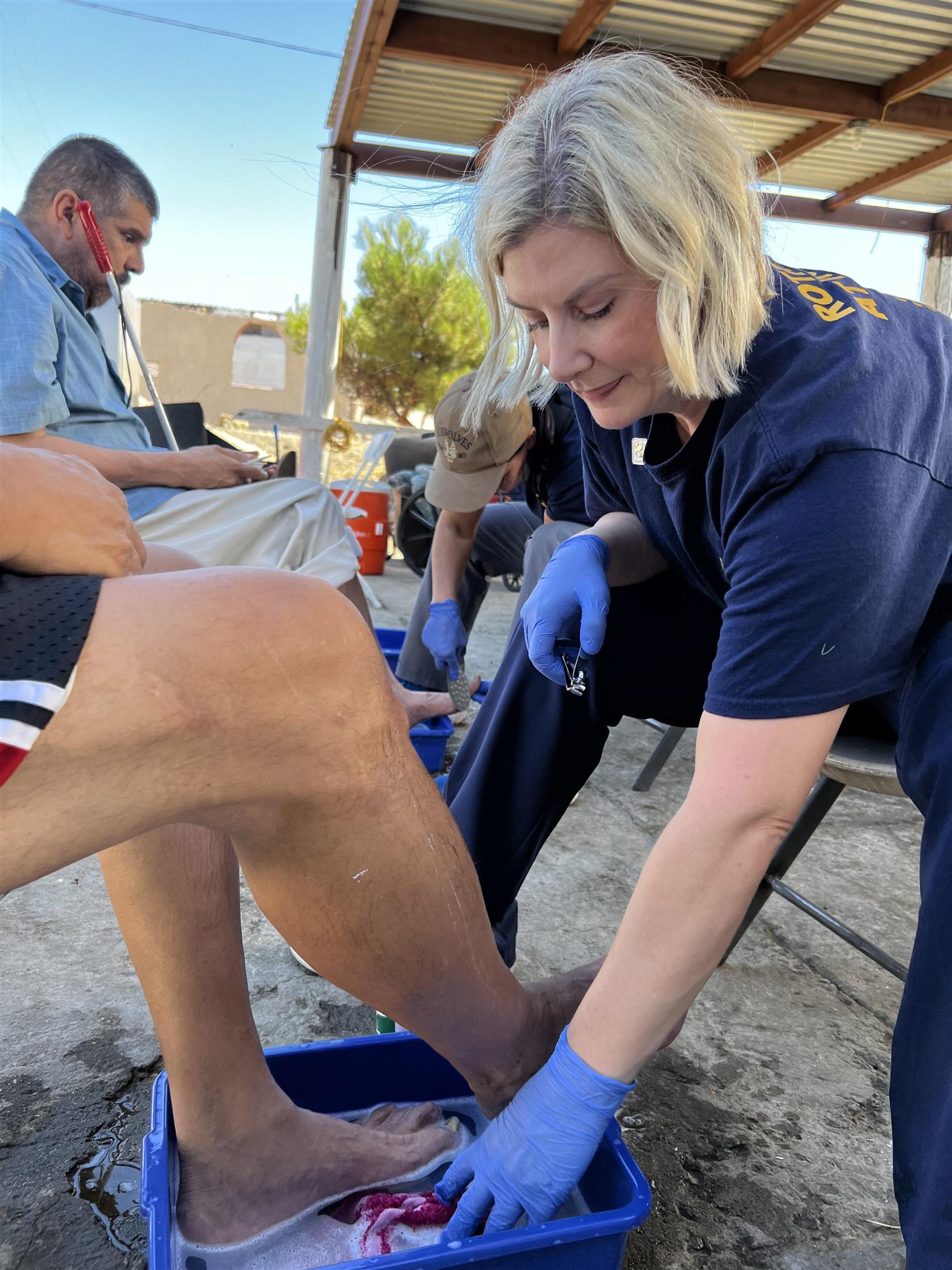 In addition to delivering supplies, the volunteers rolled up their sleeves and helped with repairs and maintenance around the home. But what left the most lasting impact was the care provided by Natalia Terreros (in Rotary Connect photo above) and Laura Clarizio (photo right), compassionate nurses who spent the day attending to the seniors’ personal needs. The pair bathed the seniors’ feet, clipped nails, and treated callouses and sores with tender care, embodying the humility and selflessness of biblical parables (ie the washing of disciples' feet).